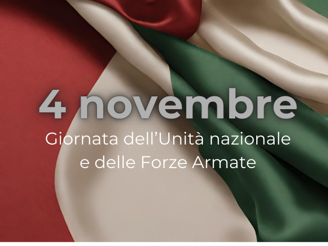 Domenica 3 novembre 2024: Ricorrenza del IV Novembre - Festa dell’Unità Nazionale e delle Forze Armate